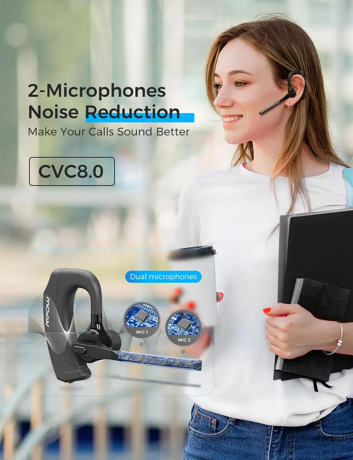 Mpow Business Wireless Headset Bluetooth Earphones With Dual Mic Handsfree Earphones with 30 Hrs Playtime for Cell Phone EM17,Mpow M5 Bluetooth Headset Wireless Headphone 13H Talking Time Earphone With Noise Cancelling Microphone For Call Center PC Phone, Mpow M5 Bluetooth Headset Wireless Headphone 13H Talking Time Earphone With Noise Cancelling Microphone For Call Center PC Phone