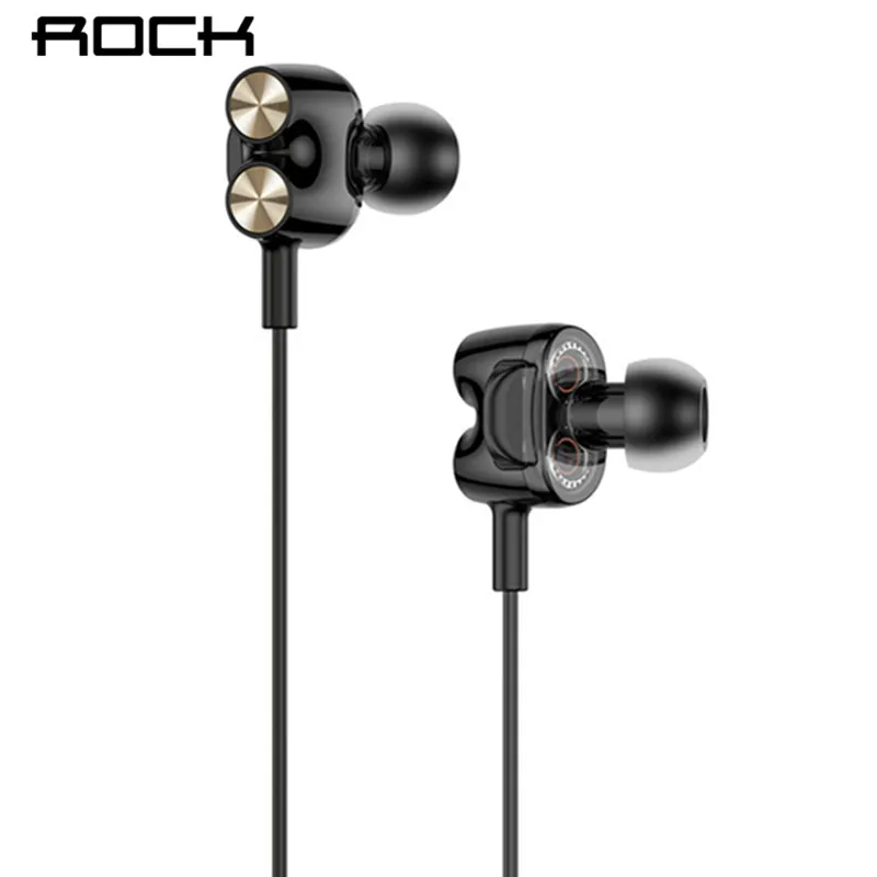 wonderful ROCK Dual Dynamic Drive Speaker Earphones with Mic Wired HIFI Stereo Headset Deep Bass Excellent Mu