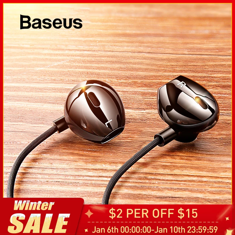 price cut Baseus C06 Wired Earphone Type C Bass Stereo Earbuds with Mic Sport Headset 3.5mm Jack for iPhone H